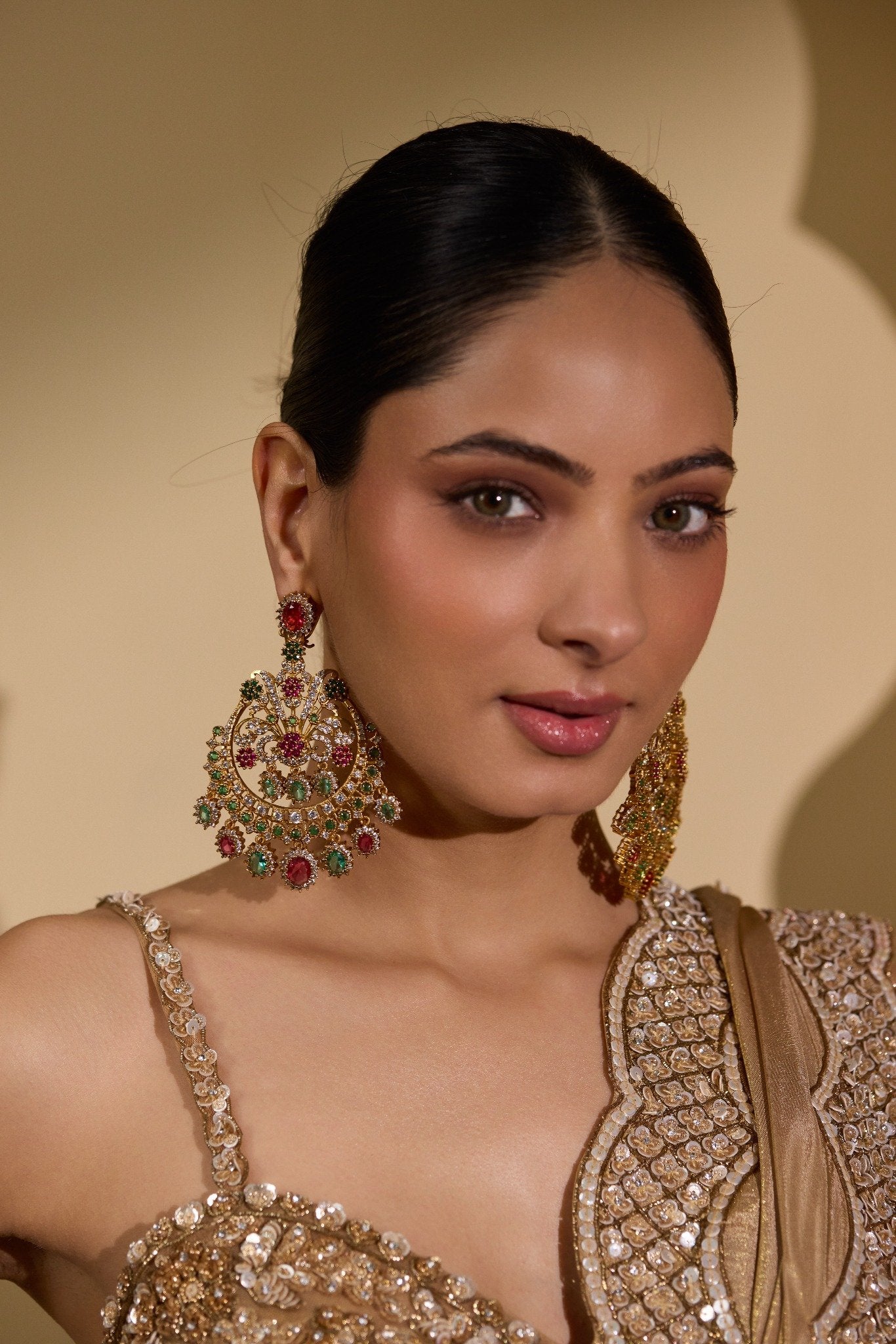Delicately structured yet boldly expressive, these statement earrings are crafted to elevate bridal ensembles, festive finery, and heirloom-inspired looks with effortless grandeur.